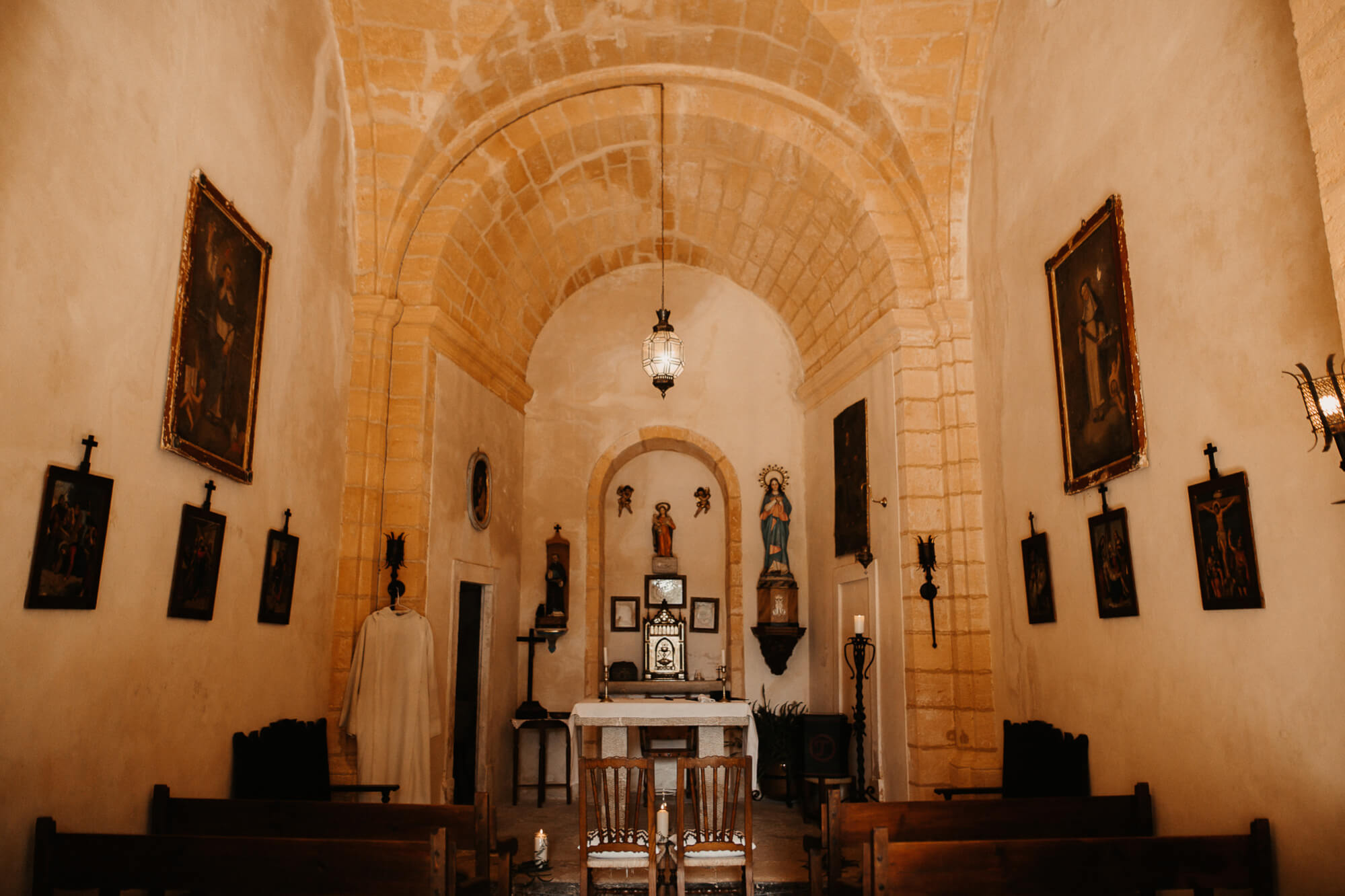 Romantisches Ambiente in der Kirche auf dem Weingut